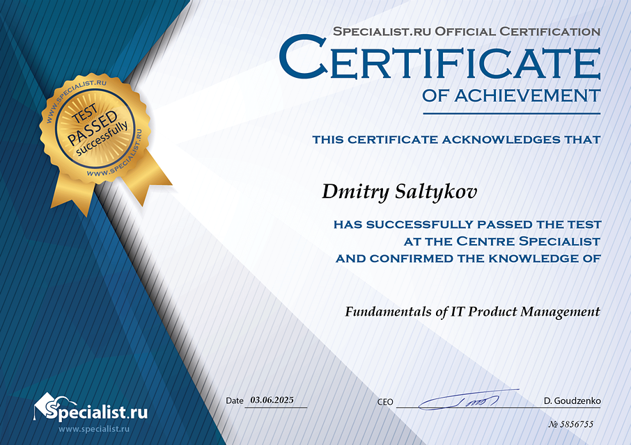 (выдан ЦКО «Специалист» - 23.01.2017 г.)